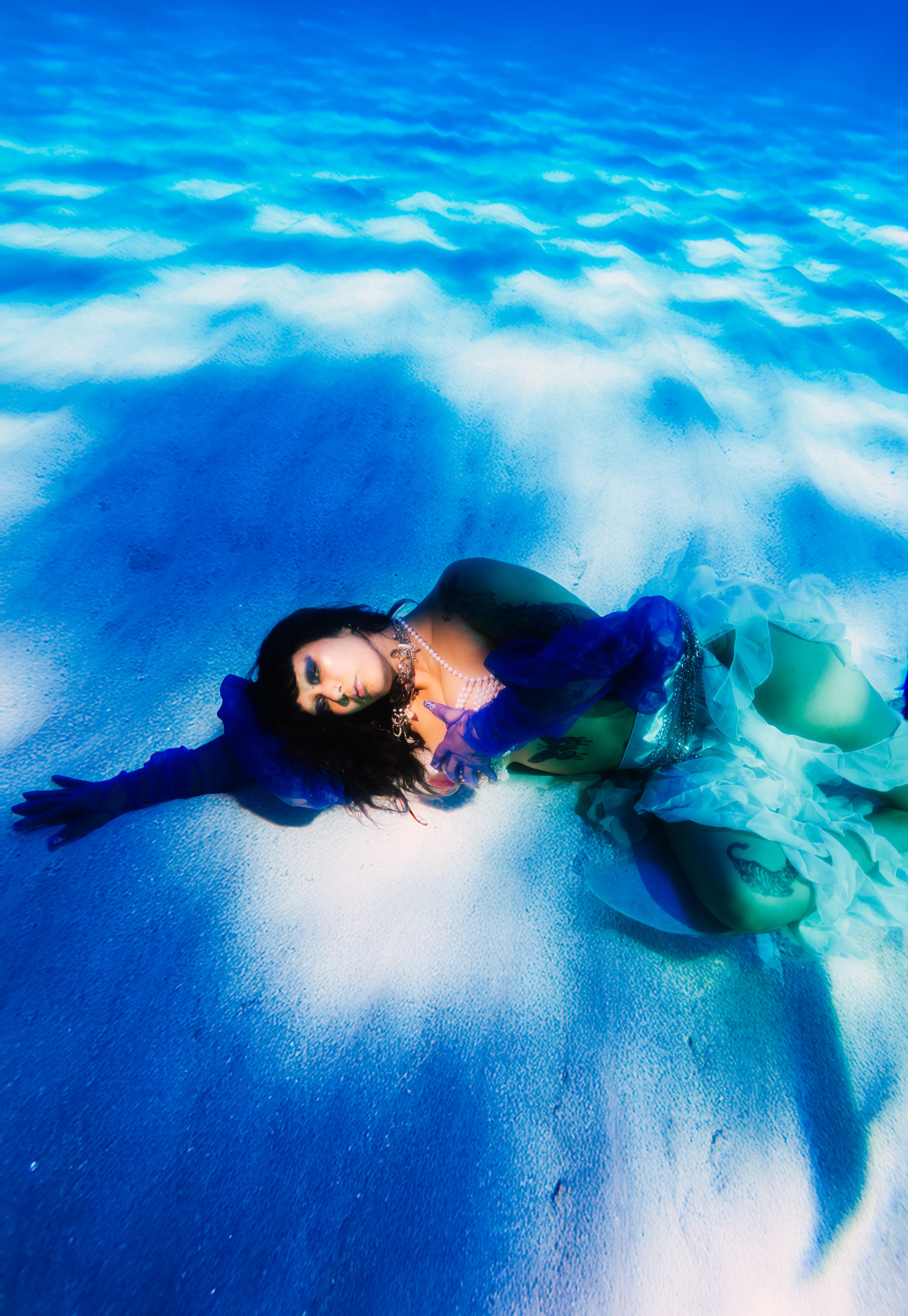 The cover art, photographed by Paige Margulies, represents “going from drowning to being above water,” Fae says.